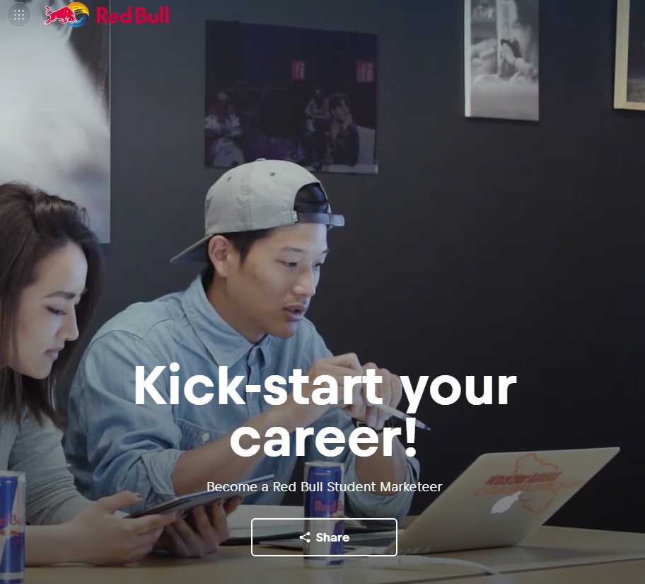 Red Bull’s campus-based brand ambassador program is a long-established one. Since 1987, the company’s been inviting students to become ‘Red Bull Student Marketers.’
